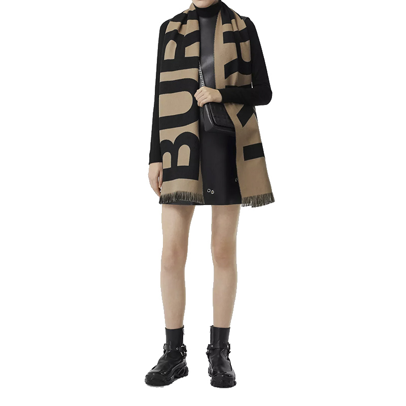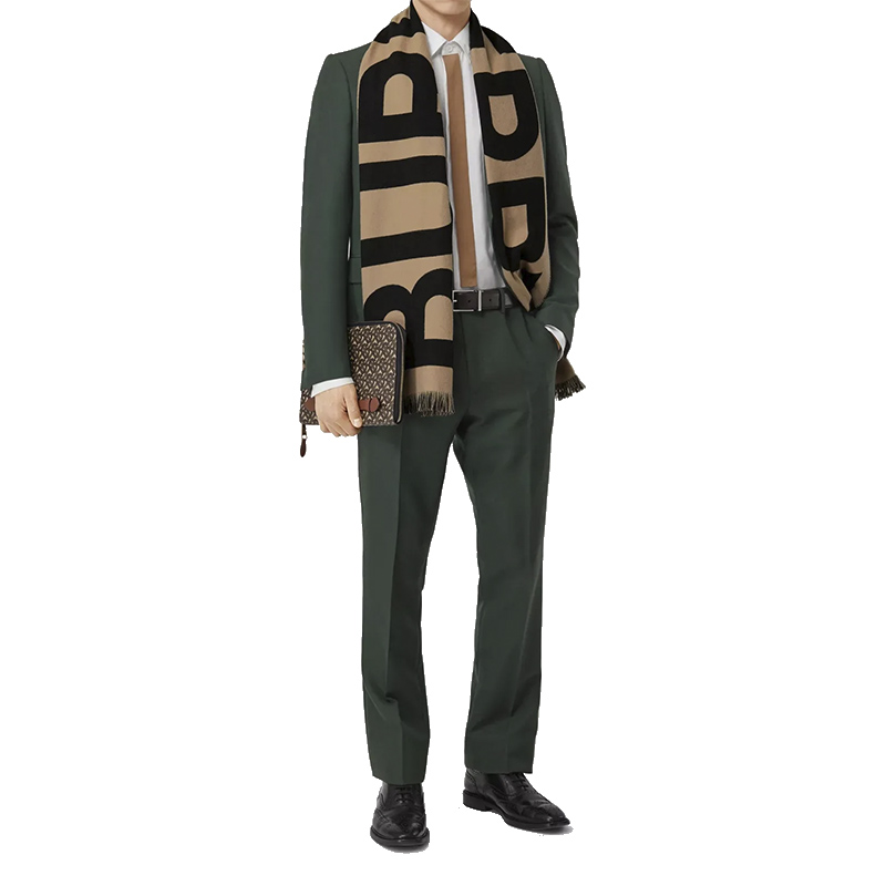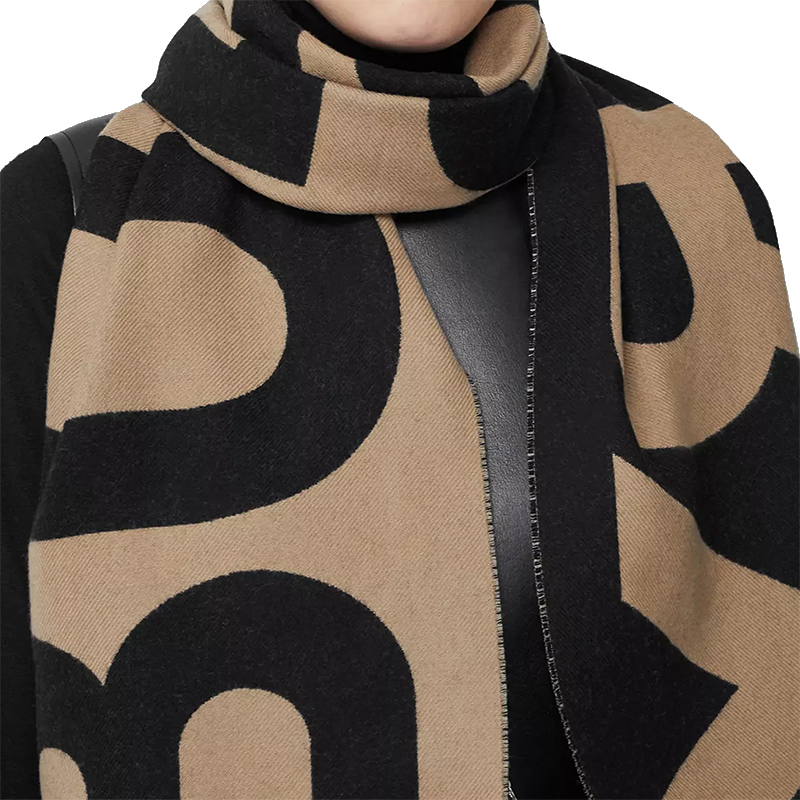 Это итальянский шарф из шерсти, на котором выткан логотип бренда.