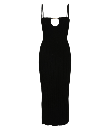 Создайте неповторимый образ с черным трикотажным платьем миди на бретельках La Robe Sierra.