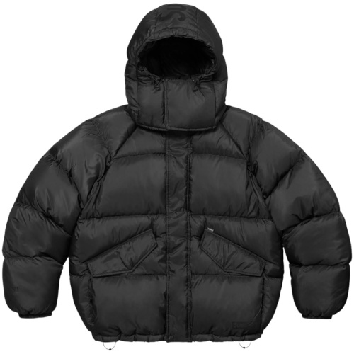 Чёрный мужской пуховик с логотипом на капюшоне FW24