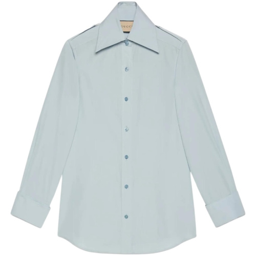 Рубашка Gucci из тонкого хлопкового поплина голубого цвета с острым воротником и застежкой на пуговицы.