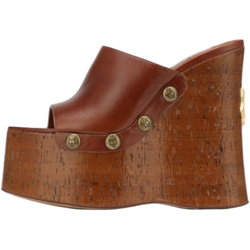 Наш новый клиновидный каблук-сабо с открытым носком — идеальное дополнение к любому летнему образу. Верх этих мюлей выполнен из высококачественной итальянской кожи класса люкс. Платформа обернута блестящей пробковой оберткой со знаменитой табличкой в виде головы волка на пятке.