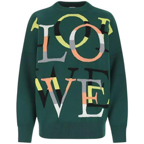 Изысканный темно-зеленый свитер LOEWE из жаккардового полотна – воплощение утонченного стиля.