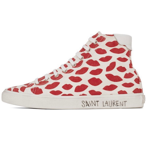 Принт в виде губ по всей поверхности, логотип на пятке и сбоку подошвы
