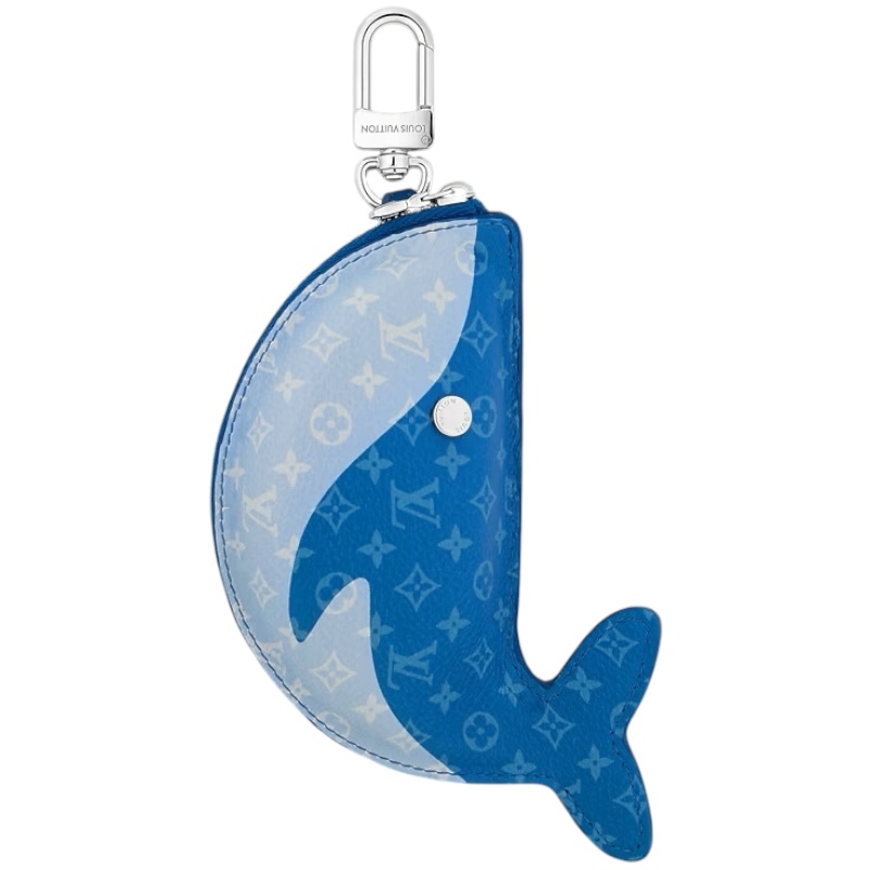 Аксессуар для сумки Whale представлен в капсульной коллекции Louis Vuitton, посвящённой 37-му Кубку «Америки». Одну сторону модели украшает красочный сезонный принт Damier Flags, другую — легендарный узор Monogram в тональной морской палитре. Оригинальный дизайн из кожи и канвы Monogram дополняет серебристая застёжка-карабин из блестящего металла. Интегрированное отделение на молнии идеально для хранения наушников и других важных мелочей.