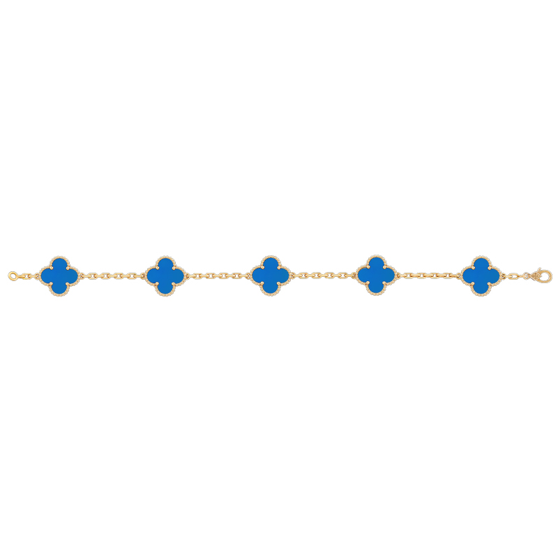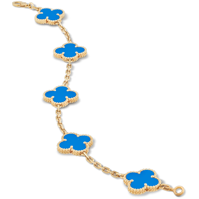 Браслет Van Cleef & Arpels Vintage Alhambra, 5 motifs желтое золото 18 карат, голубой агат.