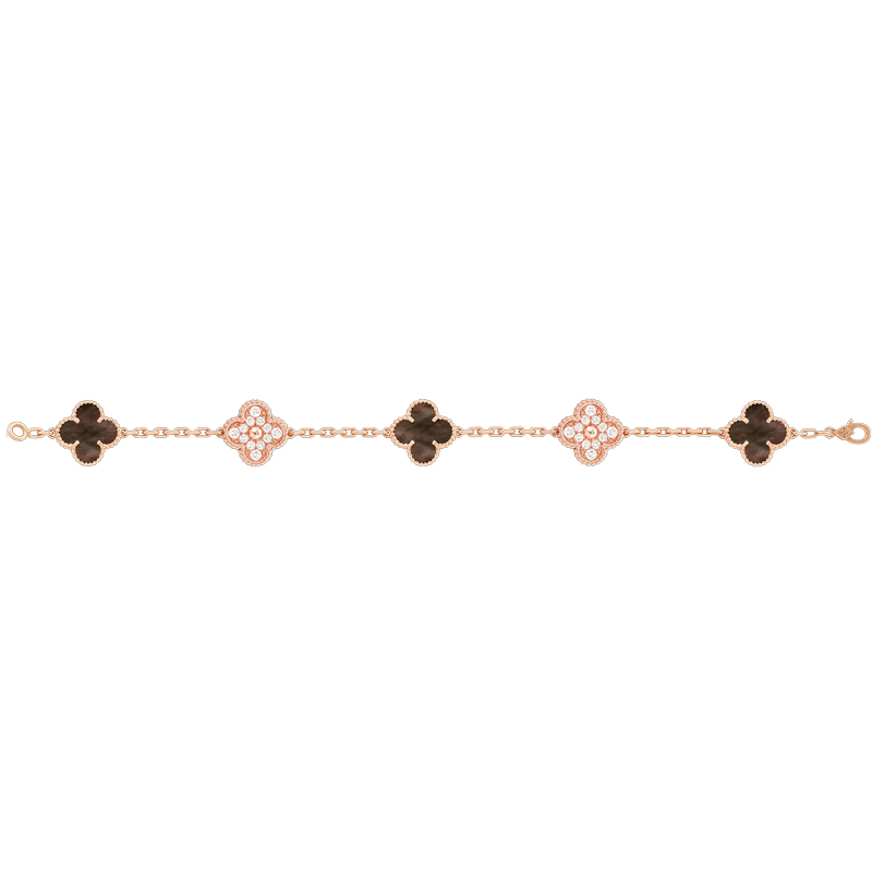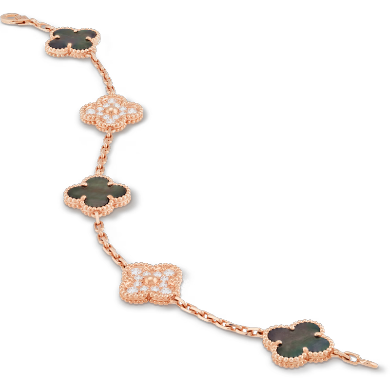 Браслет Alhambra, 5 motifs, розовое золото 18 карат, серый перламутр, круглые бриллианты; качество бриллиантов DEF, от IF до VVS