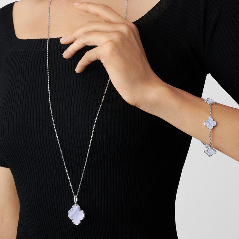 Браслет Van Cleef & Arpels Vintage Alhambra, 5 motifs родированное белое золото 18 карат, халцедон.