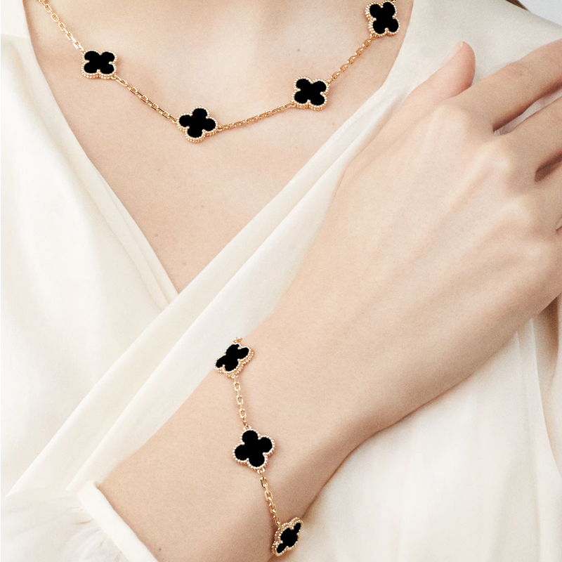 Браслет Alhambra, 5 motifs, желтое золото 18 карат, оникс.