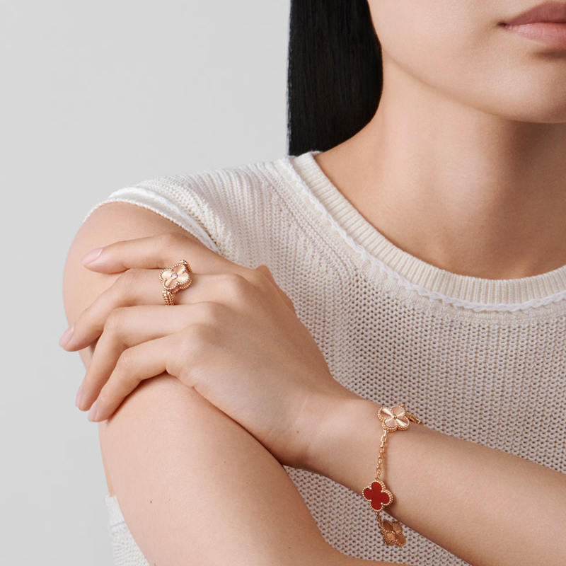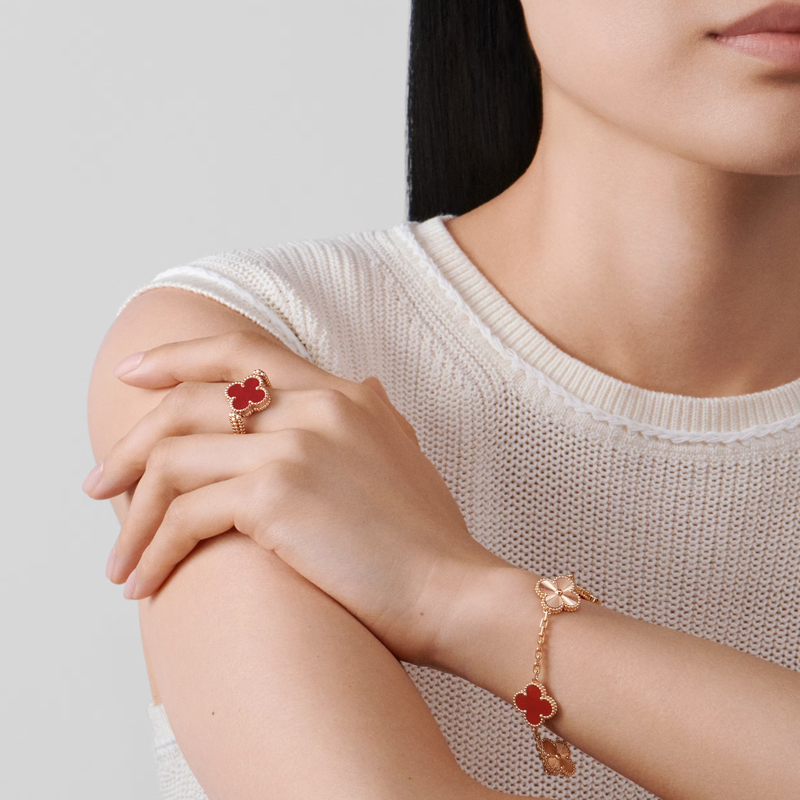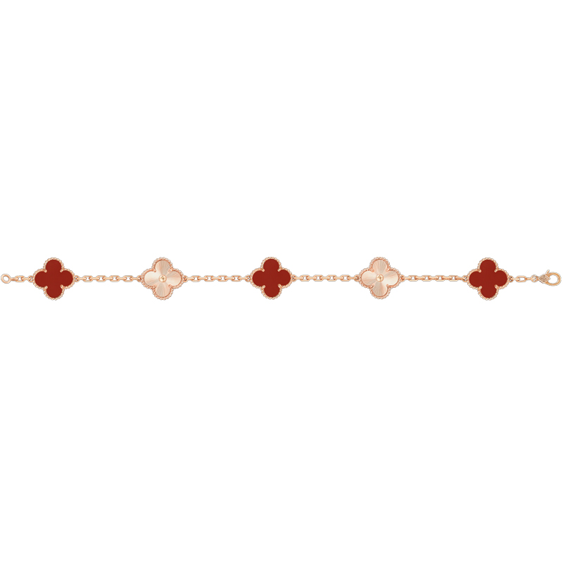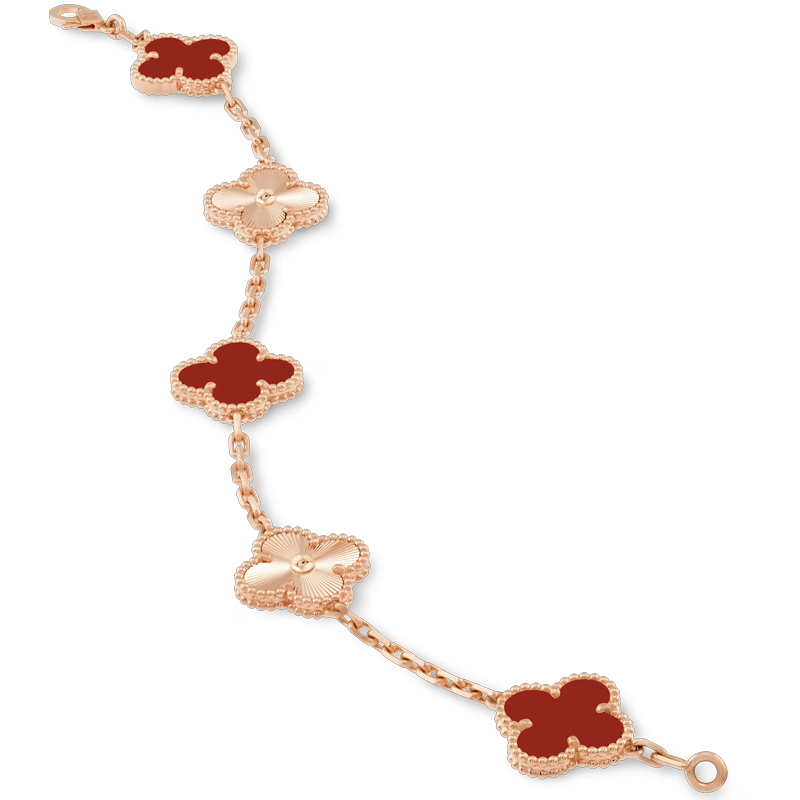 Браслет Van Cleef & Arpels Vintage Alhambra, 5 motifs розовое золото, сердолик