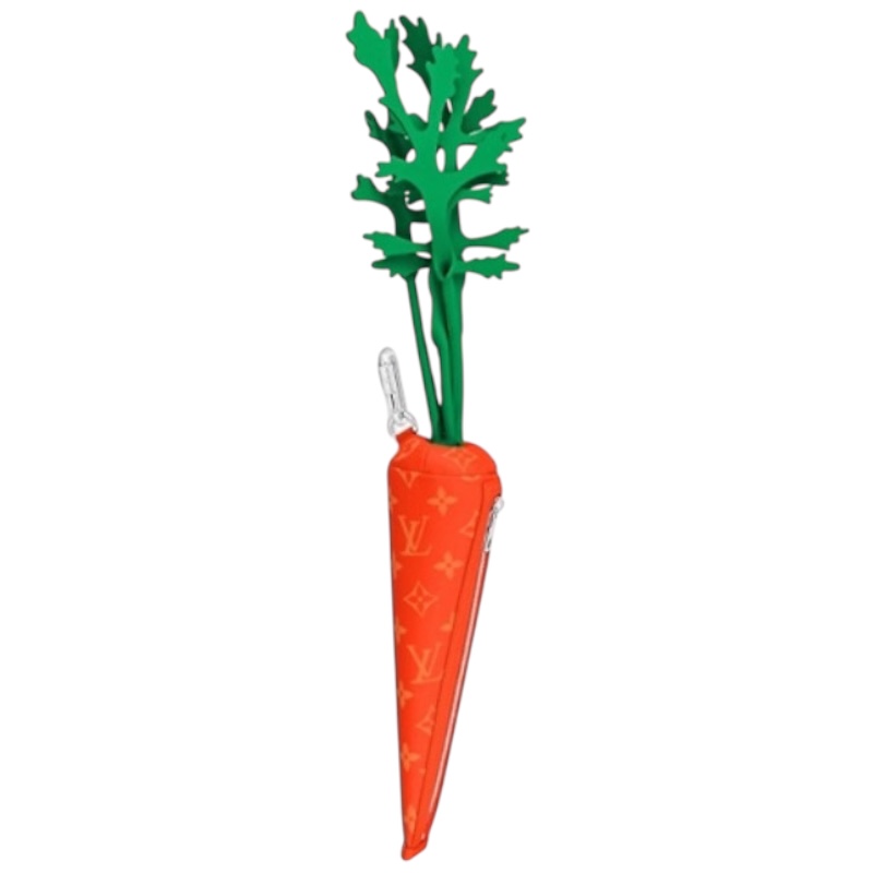 Представленный в ярком показе Вирджила Абло «Amen Break» для сезона весна-лето 2022, новый Carrot Pouch — это умный, привлекающий внимание аксессуар. Форма и цвет настоящей моркови, они сочетают в себе историческую канву Monogram Louis Vuitton с кожаным «листом» и крючком для крепления к D-образному кольцу или бегунку молнии. Это забавный подарок и исключительный предмет коллекционирования.