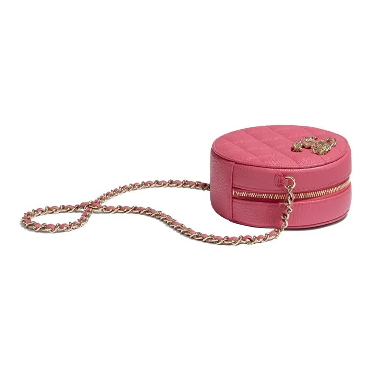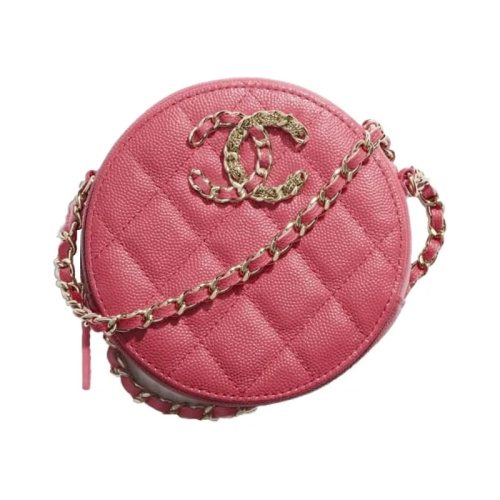 Круглая сумка розового цвета с цепочкой Caviar 19