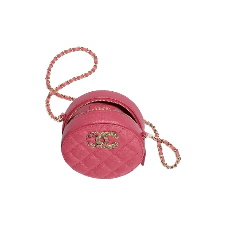Очаровательная круглая сумка Chanel, выполненная из высококачественной телячьей кожи с зернистым тиснением в нежном розовом оттенке. Ее размеры (12 х 4.5 х 12 см) позволяют носить с собой все необходимое. Золотистый логотип Chanel и цепочка добавляют ей элегантности и роскоши. Идеальный аксессуар для тех, кто ценит стиль и качество в каждой детали. Носите ее через плечо или на плече для создания неповторимого образа.