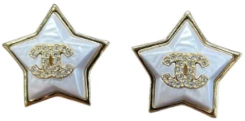 CHANEL Серьги-гвоздики с логотипом и жемчужными звёздами