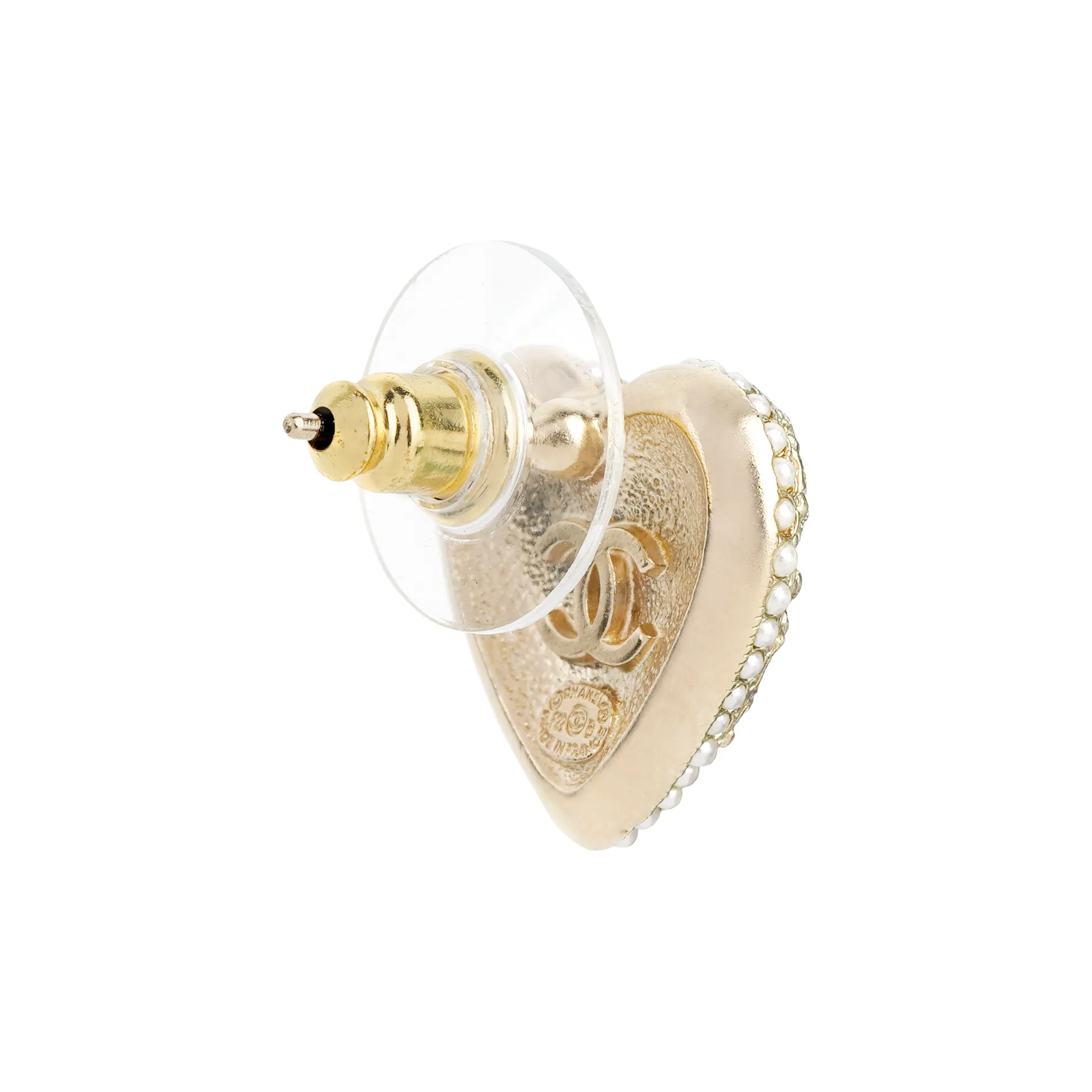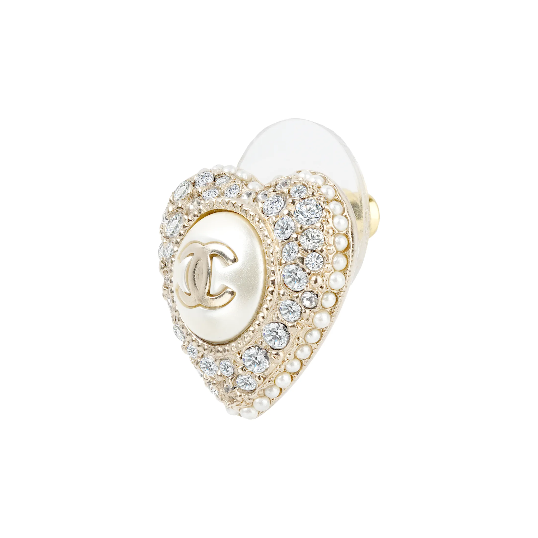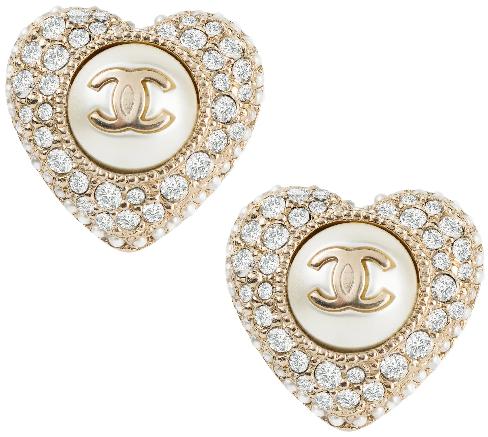 CHANEL Серьги-гвоздики виде сердец с логотипом и стразами