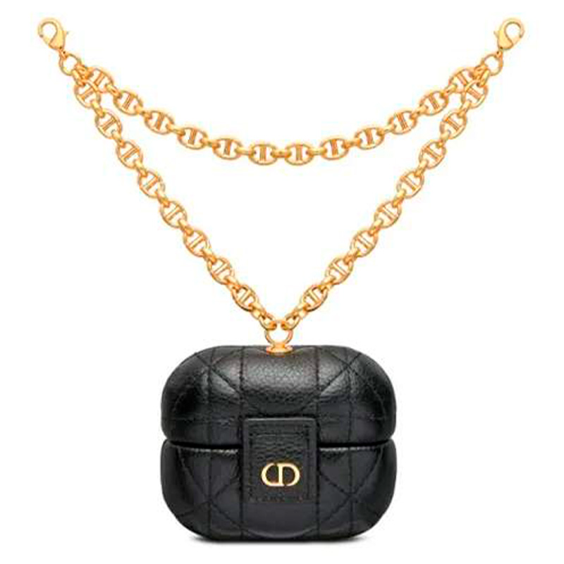 Чёрный кожаный чехол для наушников AirPods Pro на цепочке