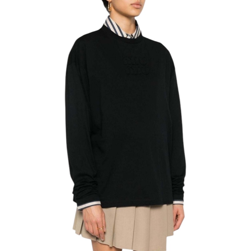 Чёрный лонгслив с вышитым логотипом