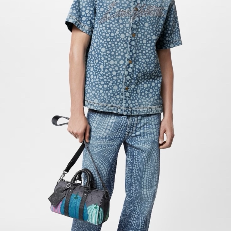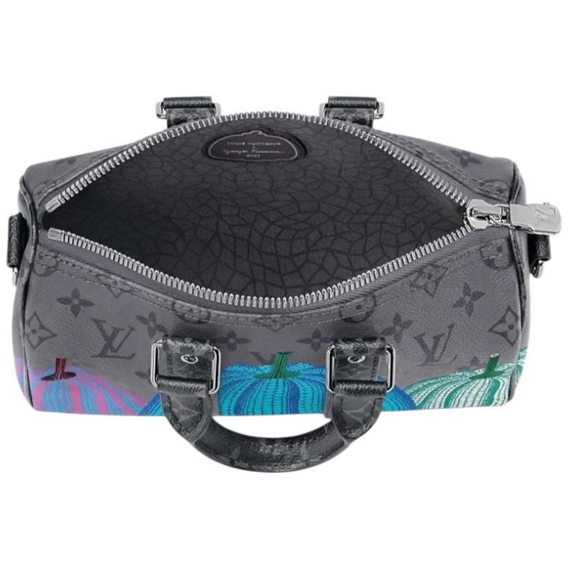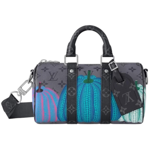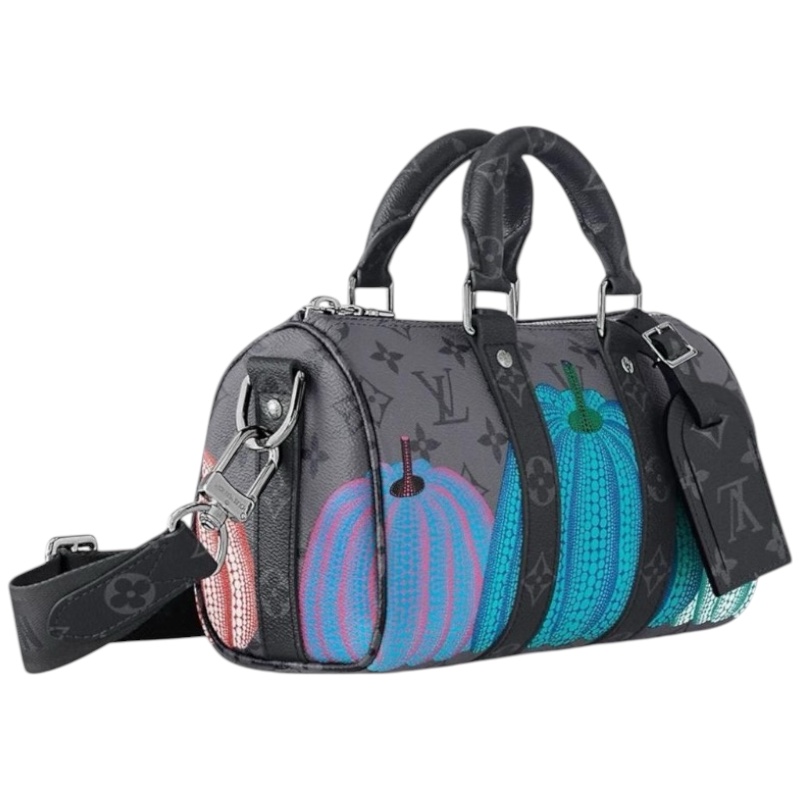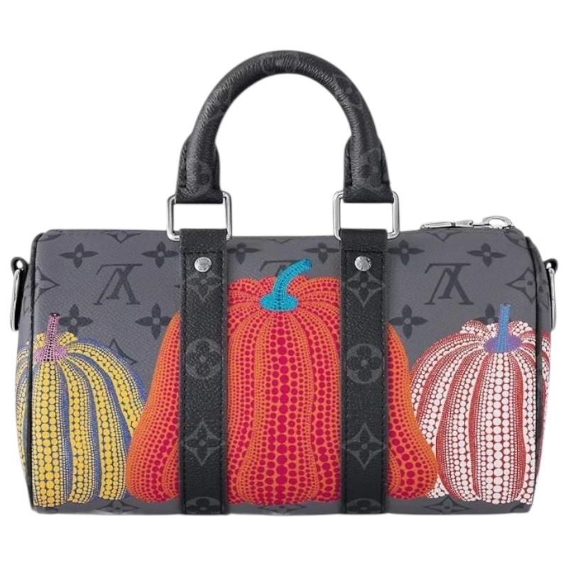 Дорожная сумка Louis Vuitton Keepall 25 с принтом тыквы из коллекции Yayoi Kusama — это эксклюзивная модель, выполненная в узнаваемом стиле монограмма. Она украшена яркими, красочными тыквами, созданными в технике пуантилизма, известной японской художницы Яёи Кусамы.
