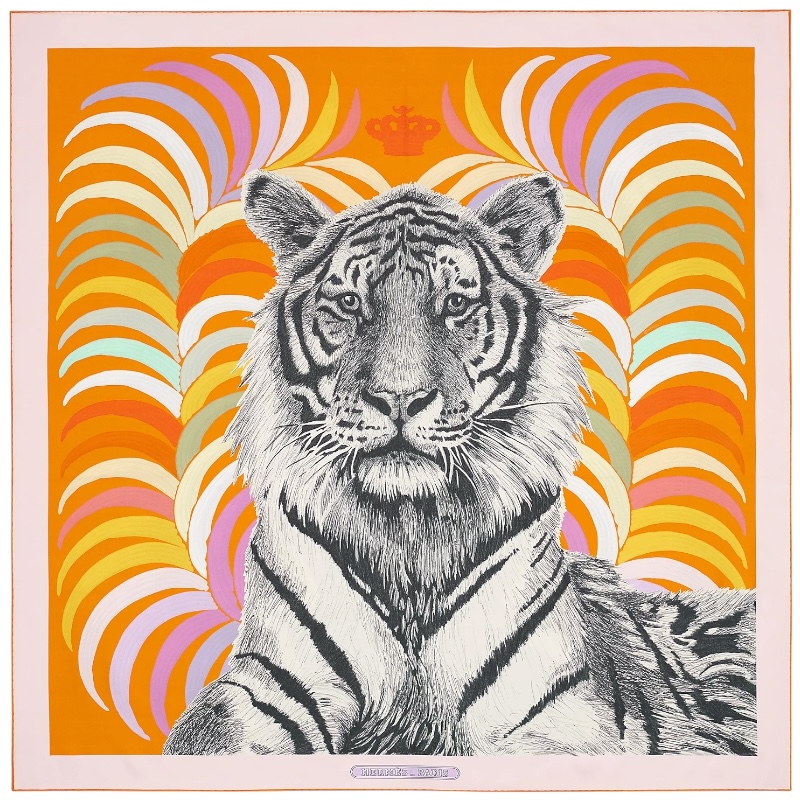 Двусторонний шёлковый платок Tigre Royal 90 оранжевый