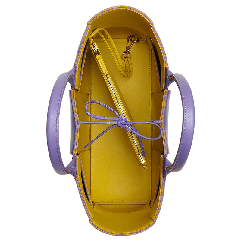 Теперь представлена в более компактном размере, Arco предлагает один открытый отсек с контрастной замшевой подкладкой и кожаной завязкой. Внутри имеется съемный карман на молнии для хранения мелких предметов.