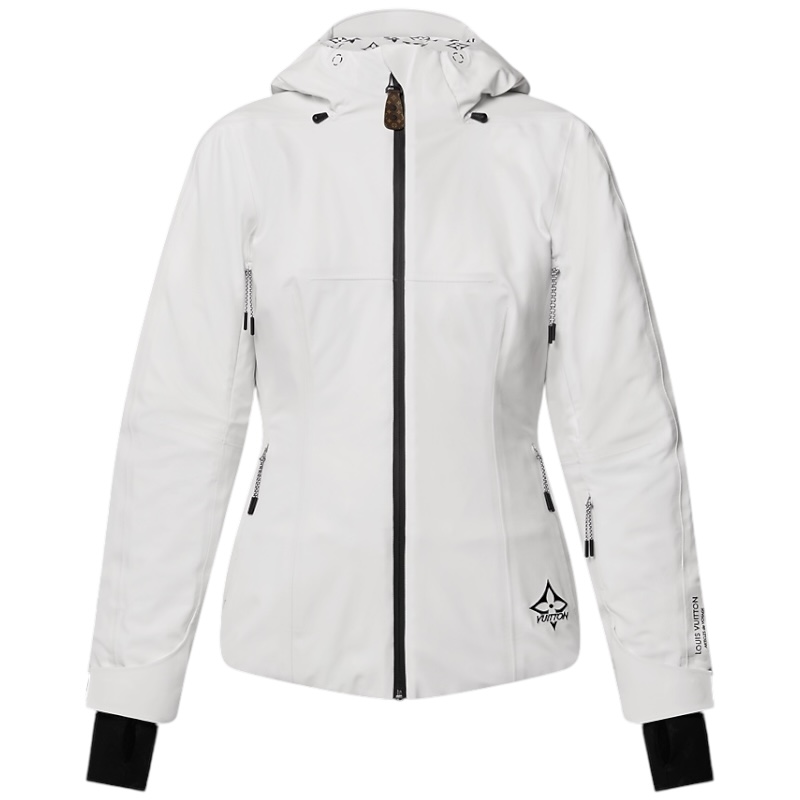 Новый подход к технической спортивной одежде: эта зауженная лыжная куртка изготовлена ​​из изолирующего, водонепроницаемого трехслойного полиамидного чехла, утеплена перьями и подбита легким нейлоновым снегозащитным щитом для оптимального тепла и комфорта. Проклеенные швы, пропитанные молнии и технические трикотажные манжеты защищают от холода, а несколько застегивающихся карманов и остроконечный капюшон подчеркивают практичность. Контрастные подписи Louis Vuitton дополняют образ графическим акцентом.