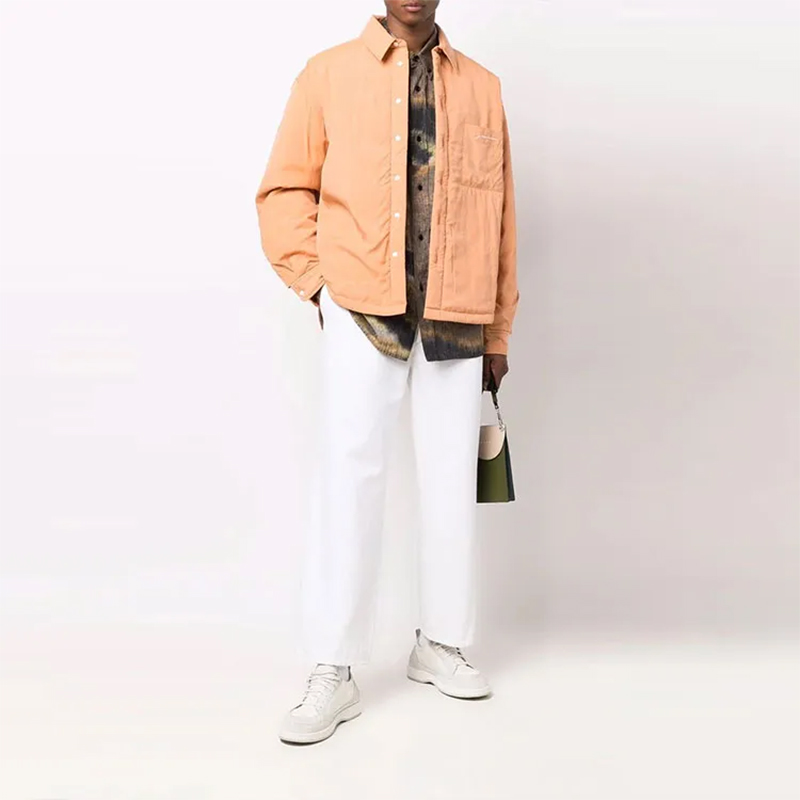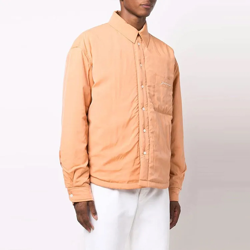 Мужская куртка с вышитым логотипом и застежкой на пуговицы персиковая