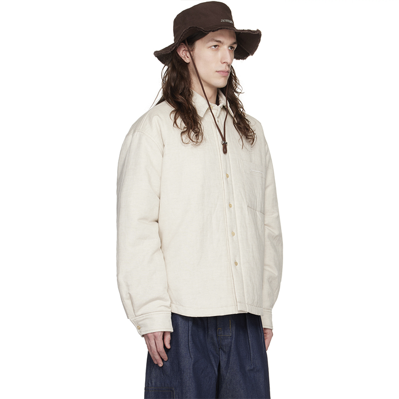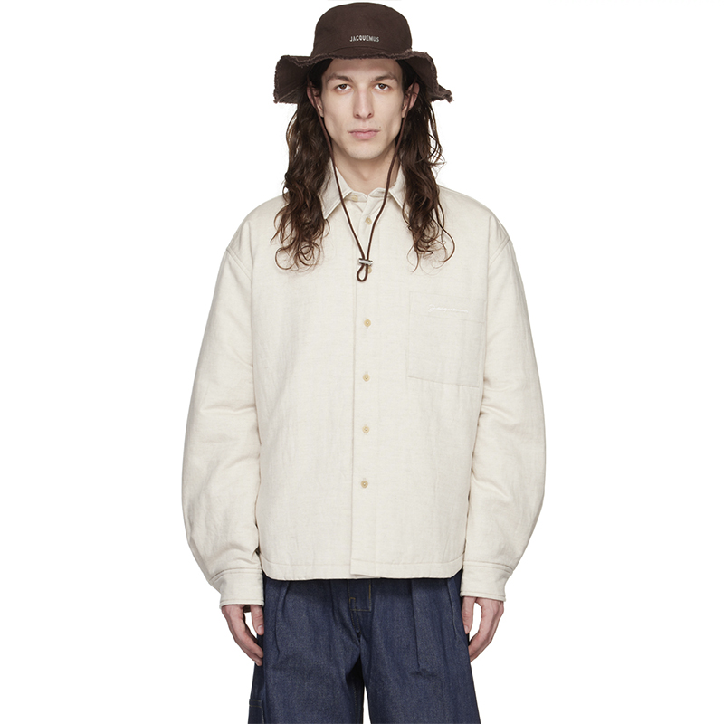 Jacquemus Мужская куртка с вышитым логотипом и застёжкой на пуговицы бежевая