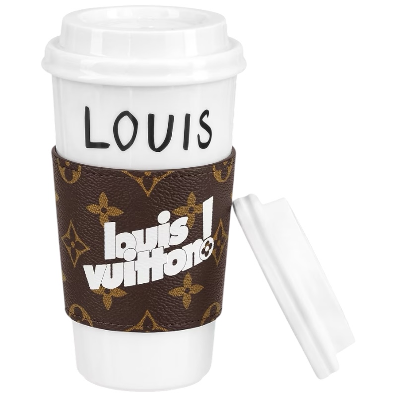 Стакан для кофе Louis — стильная экологичная версия любимого городского аксессуара. Многоразовую модель из фарфора дополняют 2 крышки: элегантная фарфоровая и практичная силиконовая. Удобный держатель из канвы Monogram акцентирован эффектной отделкой из кожи VVN. Дизайн завершают логотип LV Circle и символы подиумных коллекций Louis Vuitton.