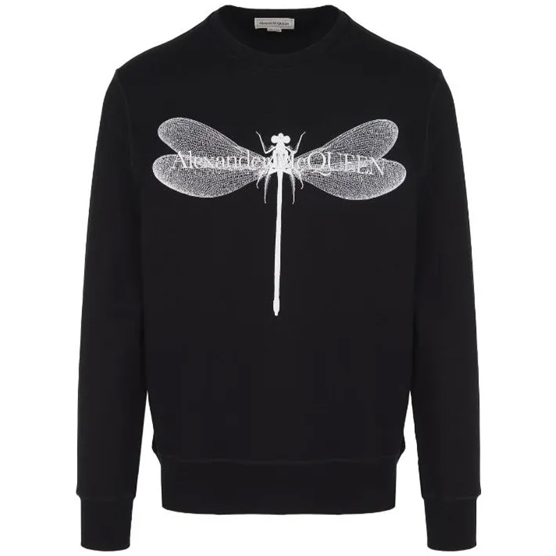 Хлопковая чёрная толстовка с принтом стрекозы
