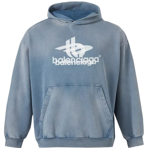 Хлопковое голубое худи с эффектом потертости