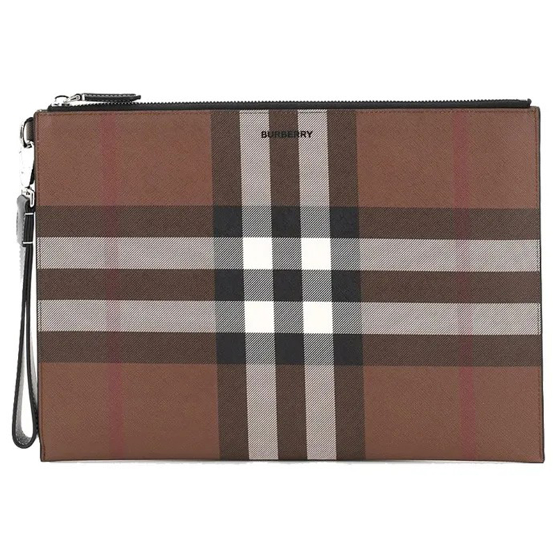 Хлопковый коричневый клатч в клетку на молнии
