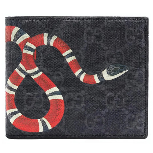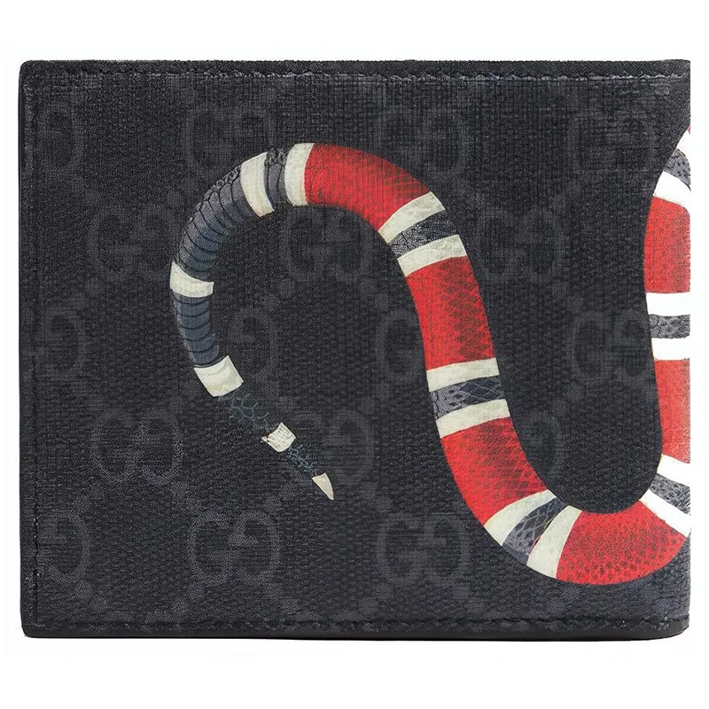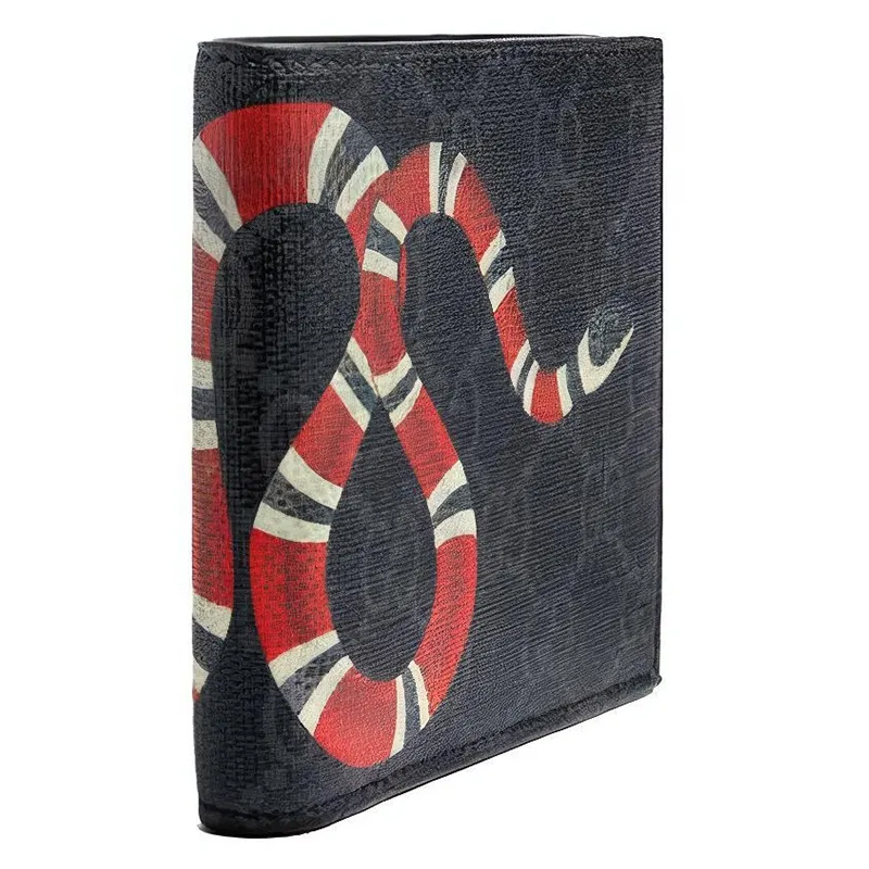 Kingsnake, в ярких цветах, продолжает появляться как одна из характерных деталей эклектичного повествования Дома. Здесь он напечатан на кошельке, сделанном из холста GG Supreme.