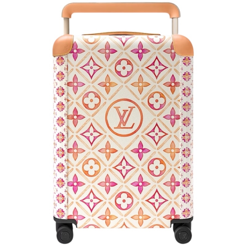 Чемодан на колесиках Horizon 55 из коллекции LV By The Pool выполнен из холста с покрытием Monogram Tiles, с натуральной воловьей кожей на углах и тростниковой ручкой. Узор Monogram с его нерегулярной обработкой и круг LV в центре сумки придают этому практичному чемодану ощущение непринужденного шика.