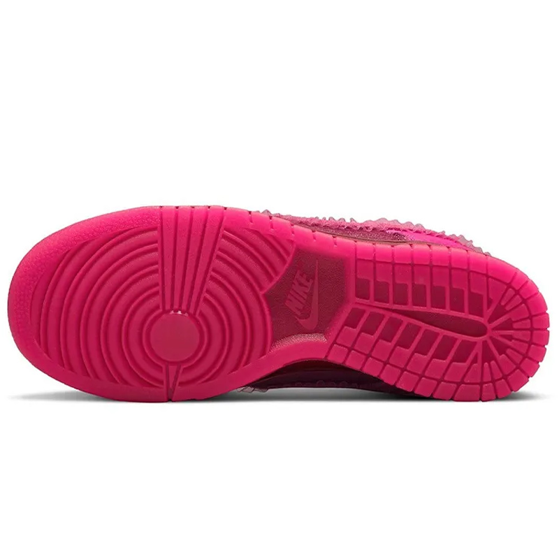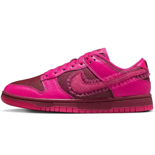 Силуэт Dunk Low от Nike был разработан с целью внедрения баскетбольного влияния в низкие кроссовки. Изготовленная из розовой кожи и отделкой из рюш, эта модель представляет новую и свежую цветовую гамму для иконы обуви.
