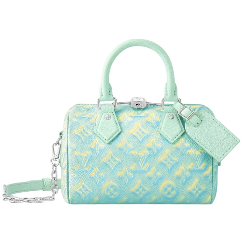 Новая цветовая гамма с мерцающим аспектом придает этой сумке Speedy Bandoulière 20 драгоценный женственный вид. Ее необычная форма, верхние ручки из свернутой кожи и звонок для ключей напоминают культовый багаж Louis Vuitton 20 века. Съемный ремень из цепи и кожи позволяет носить сумку на плече и через плечо.
