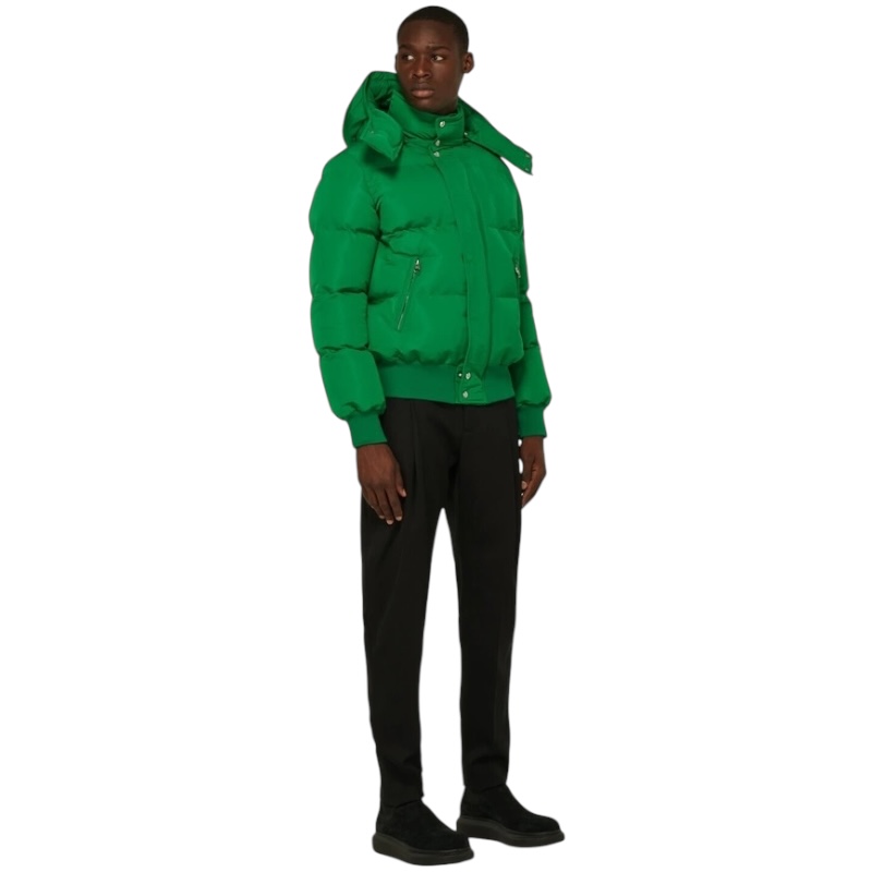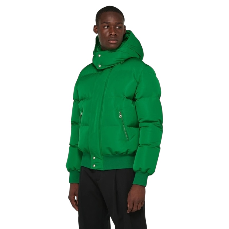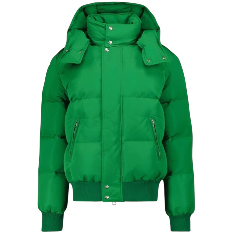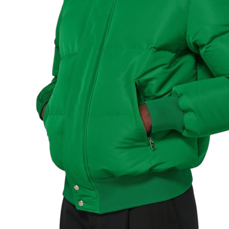 Пуховик от Alexander McQueen, выполненный в цвете зеленый хром, изготовлен в Италии из технической ткани. Благодаря двусторонней застежке на молнию спереди и съемному капюшону, эта куртка имеет удобный силуэт на подкладке и украшена граффити с логотипом бренда на спине