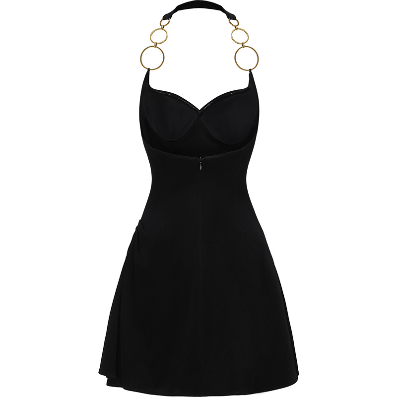 Металлические бретели с кольцами придают уникальный декоративный эффект, напоминающий падающую звезду в ночном небе. Дизайн обеспечивает комфорт и правильную посадку благодаря соединению ткани сзади.
