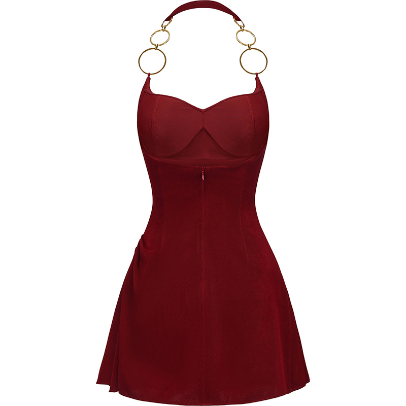 Это красное платье одновременно продумано и практично. Оно оснащено встроенной нагрудной накладкой для дополнительного удобства и комфорта, что позволяет носить его напрямую без дополнительного нижнего белья. Юбка драпируется на талии, подчеркивая изгибы и придавая очаровательный игривый вид.
