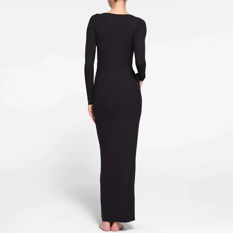 Это платье от Skims, бренда созданного Ким Кардашьян, станет вашим новым любимым нарядом для любого случая. Изготовленное из мягкой, дышащей ткани из модала (91%) и спандекса (9%), платье идеально облегает фигуру, подчеркивая ваши изгибы.