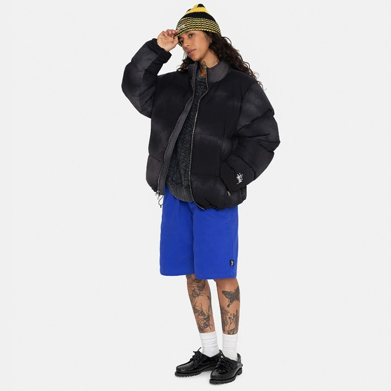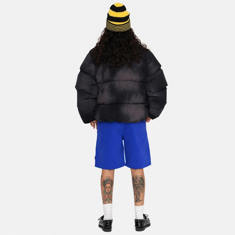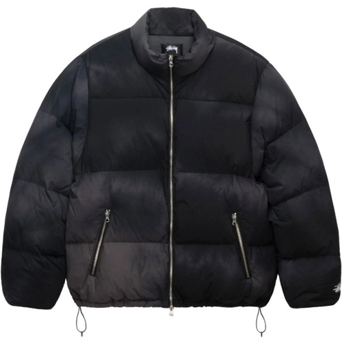 Чёрный пуховик из переработанного нейлона Stussy FW22 тай-дай