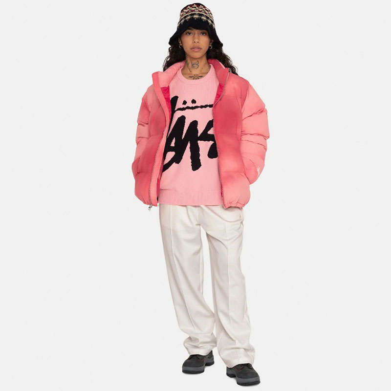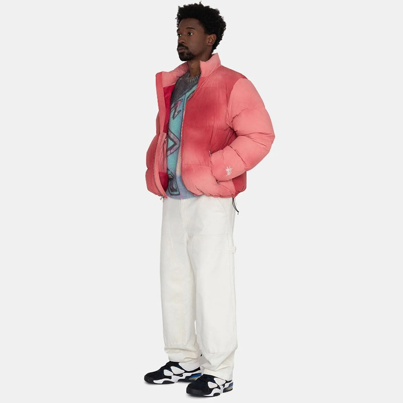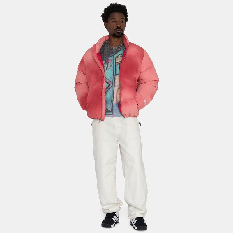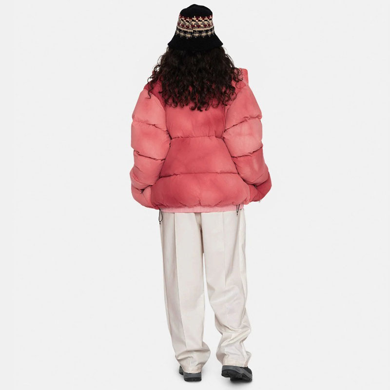Красный пуховик из переработанного нейлона FW22 тай-дай