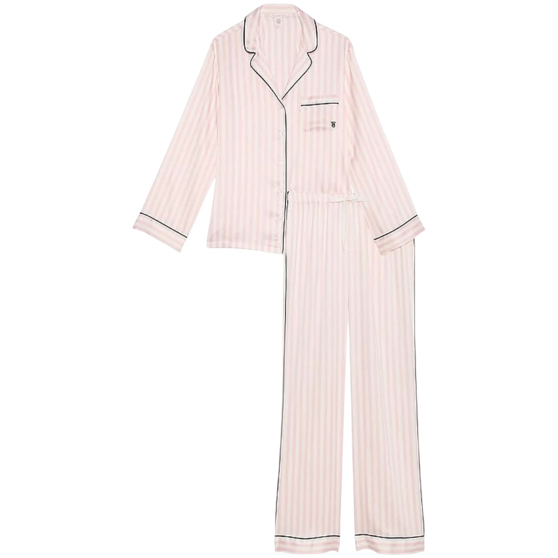 Расслабьтесь в этих роскошных атласных брюках и подходящем топе с длинными рукавами, нагрудным карманом, воротником-стойкой и декоративной окантовкой.