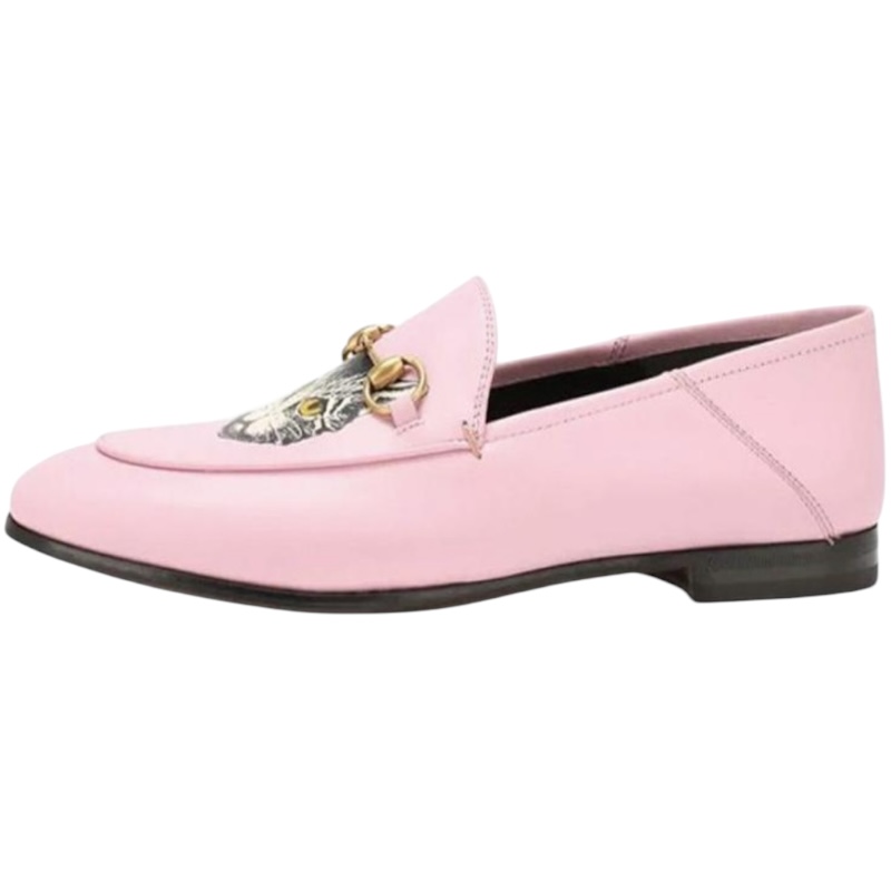 Погрузитесь в кошачий шик с женскими кожаными лоферами Gucci «Pink Cat Print».