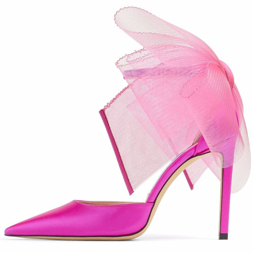 Эти босоножки Averly от Jimmy Choo на эффектном каблуке высотой 100 мм украшены двумя асимметричными крупными бантами, которые искусно сплетены, завязаны вручную и пришиты, что придает образу эффектный вид.