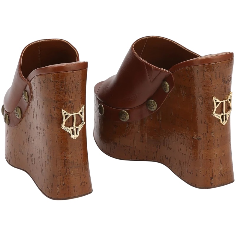 Наш новый клиновидный каблук-сабо с открытым носком — идеальное дополнение к любому летнему образу. Верх этих мюлей выполнен из высококачественной итальянской кожи класса люкс. Платформа обернута блестящей пробковой оберткой со знаменитой табличкой в виде головы волка на пятке.