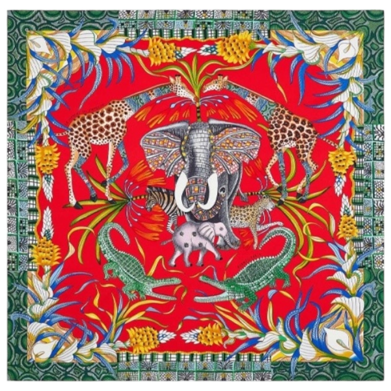 Шёлковый платок La Marche du Zambeze красный 90