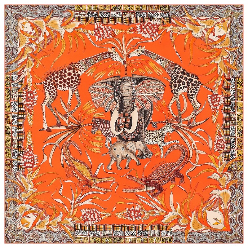 Шёлковый платок La Marche du Zambeze оранжевый 90