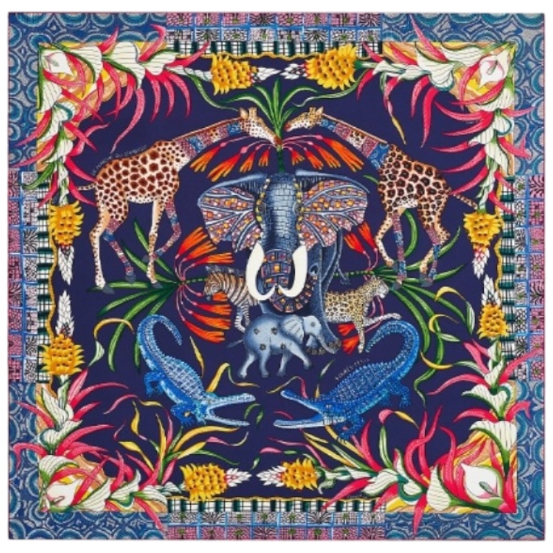 Шёлковый платок La Marche du Zambeze тёмно-синий 90