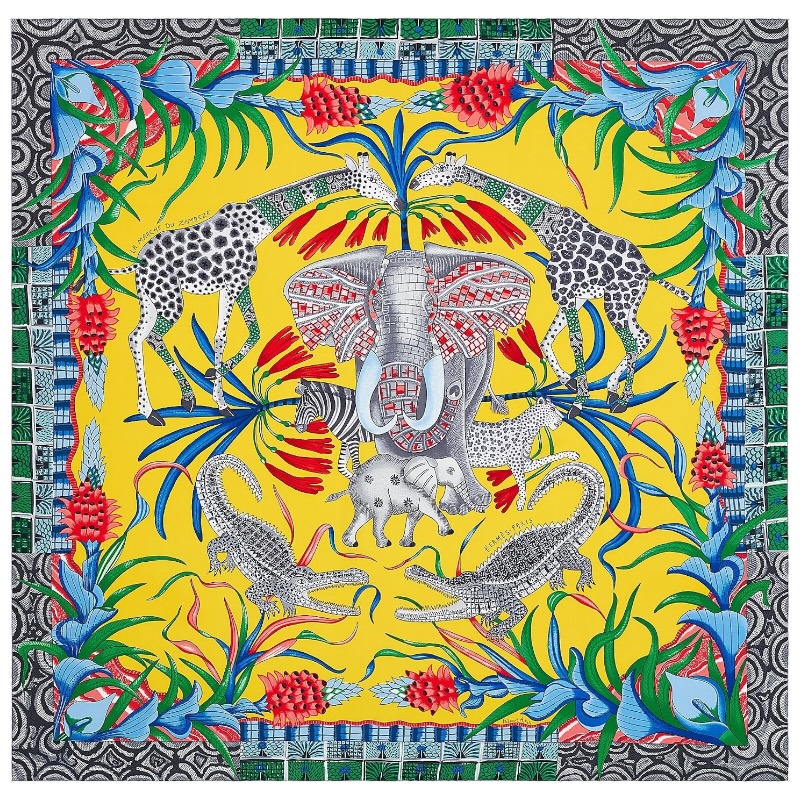 Шёлковый платок La Marche du Zambeze жёлтый 90