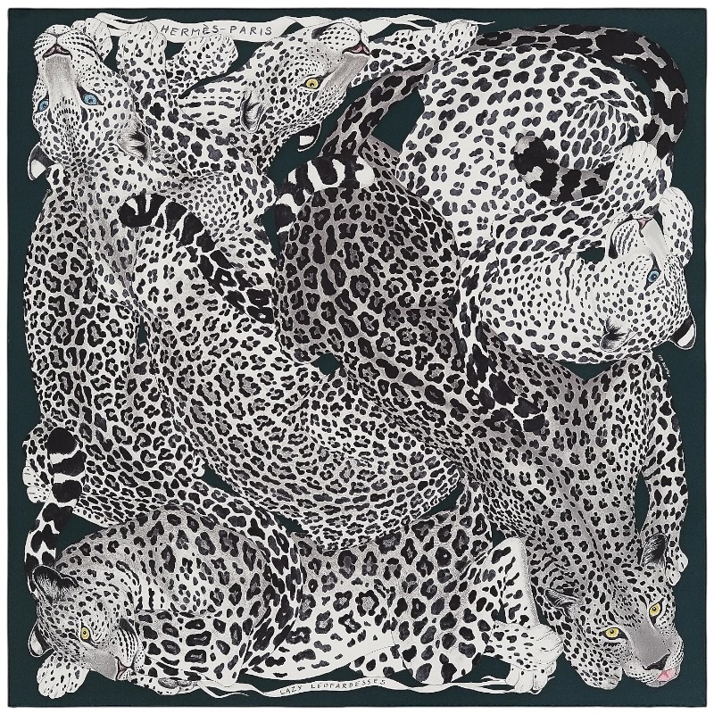 Шёлковый платок Lazy Leopardesses vert/noir 90