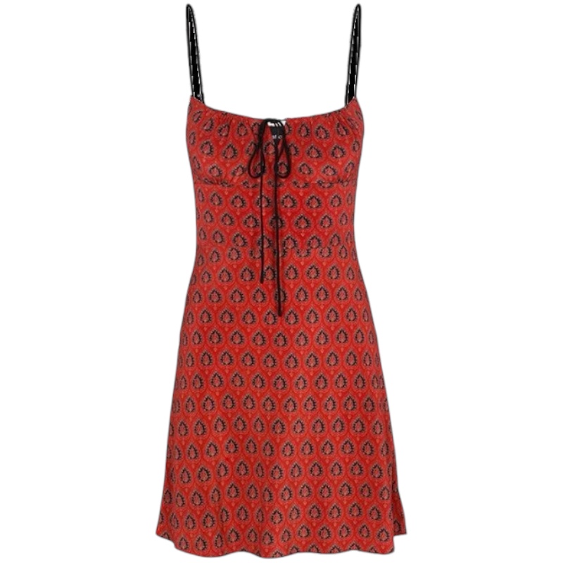 Женское мини платье на бретельках, с завязками на груди и принтом